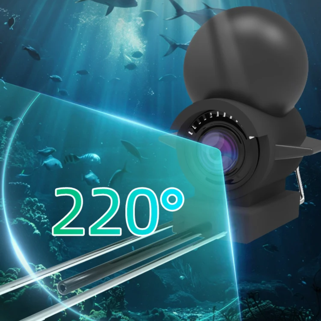 L’angle de 220° offre une vision ultra-large pour repérer les poissons dans leur environnement naturel.